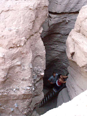 The canyon gradually gets narrower and narrower and you can see C.J. holding a ladder for Danielle as she climbs the side - I don't know why?!