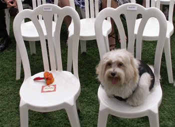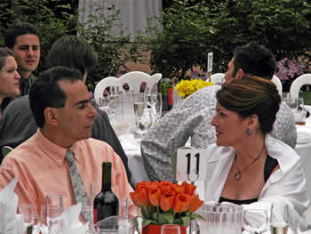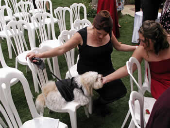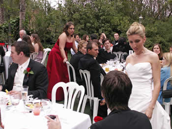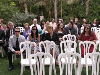 Outdoor weddings are fun, but the plastic chairs do tend to dominate. Here the bride's side of the isle is filling up.