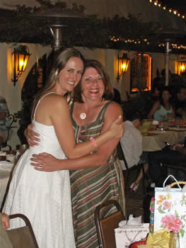 Julie opening presents; surrounded by her soon-to-be children Alex and Paige and her stepmother Patty.