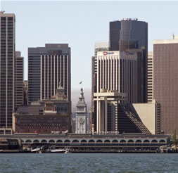 We rounded the San Francisco Wharf area, got a beautiful view of Coit Tower, and then passed in front of the Port of San Francisco building. It was almost buried by all the high rises that surrounded it.