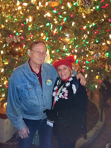 As the evening wound down we passed the giant Christmas Tree on Main Street and someone kindly took our picture in front of it.
