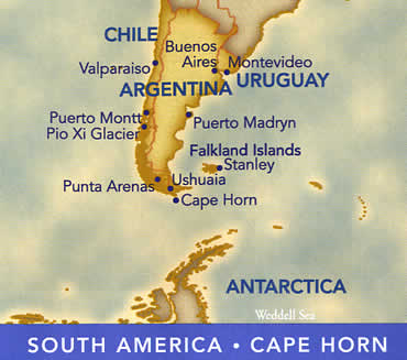 This map shows all the stops on our cruise. We were unable to get to the Pio Xi Glacier because of weather, but we did cruise by the Amalia Glacier. While we ended our cruise in Valparaiso, we immediately bussed to Santiago for 2 additional days.