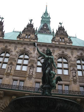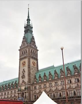 St Michele has a tower visitors can go up in and the view of the city is shown in the photos above. The weather was overcast, but the city was still impressive. Note the Rathaus on the left (with the green roof) and the Queen Mary 2 on the right.