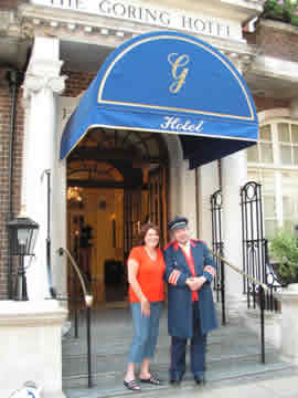 Our first stop in London was at the Goring Hotel. This is a fabulous small hotel with outstanding service and some of the best food we have ever tasted. It is located a block from Buckingham Palace and 2 blocks from Victoria Station. You can get to anywhere in London easily from this location. Notice the arrow pointing to our luxurious room.