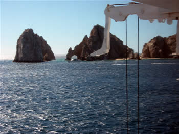Arriving in Cabo San Lucas after rounding the southern most point of Baja California, we anchored in the harbor and ferried people ashore using the lifeboats.