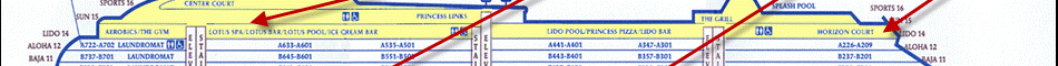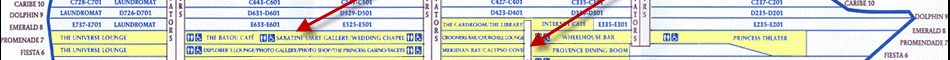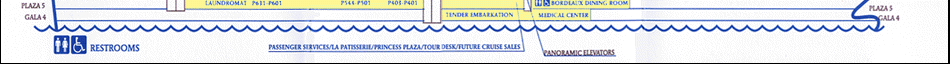 She is sleek and seems more elegant than other, larger ships. The floor plan shown below has many things centrally located and it does not take long to get anywhere on the ship. Most shopping and ship's business is conducted around the panoramic elevators in the atrium.