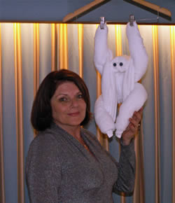 Back on the ship Patty showed off some towel art the room steward had left behind while we were ashore.
