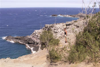 The islands often make you feel small and rather frail. Here Pat is examining the terrain over some steep ocean cliffs.
