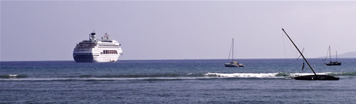 Coming back into Lahaina you can see why the Regal Princess is moored so far out. Notice the sailboat aground on a shallow reef in the foreground.