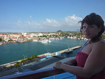 Arriving in Bonaire Patty got a panoramic view of the countryside. It is really pleasant when the ship docks near a residential area and we look out of our cabins on something besides loading docks.