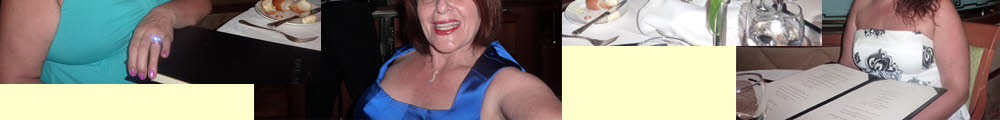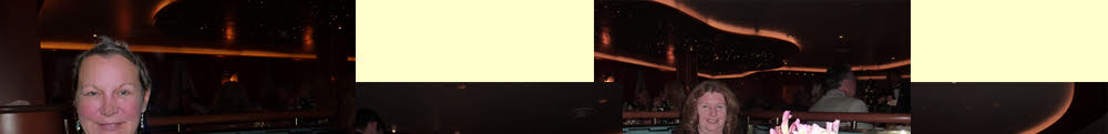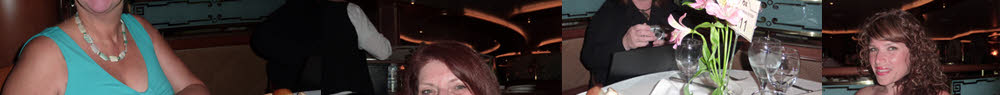 Also, there was the first night's dinner to dress for. Here Danielle and Patty pose in the atrium, next to the glass elevators.
