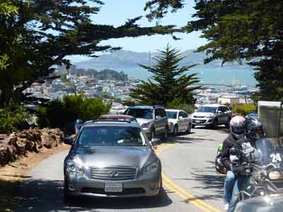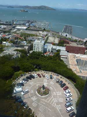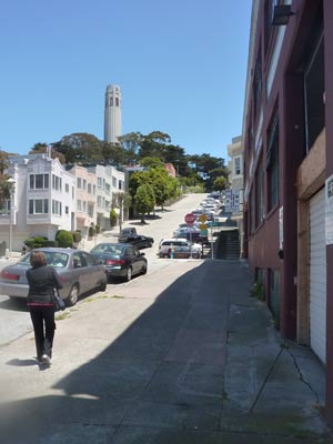 After checking in to the Mark Hopkins we looked at the view from Nob Hill and decided to walk down, then up to Coit Tower. As you can see, the hill up to Coit Tower is fairly steep and most people try to drive - rather than walking like we did - but there is very little parking at the circle in front of the tower.