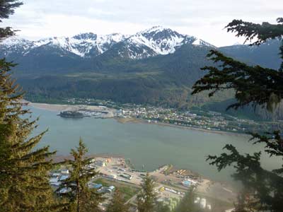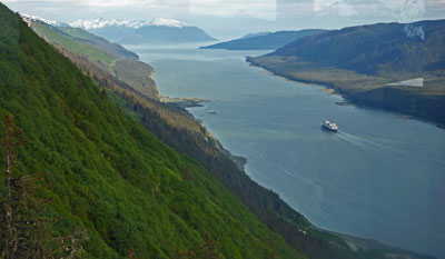 We took a tram from downtown Juneau to the top of Mt, Roberts and got the following views of the channel leading past Juneau...