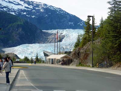 We took the city bus to the glacier - it stopped at the entrance, a mile from the park office - and got this view of the glacier while we were walking in.