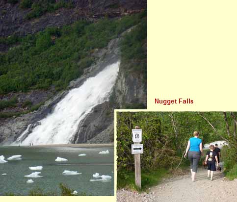 This is a common view of the glacier, with Nugget Falls shown at the right.