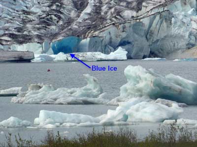 The Mendenhall Glacier is known for its clear, blue ice and an example is shown in this picture.