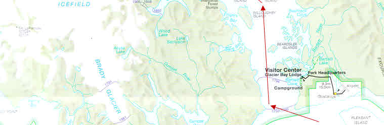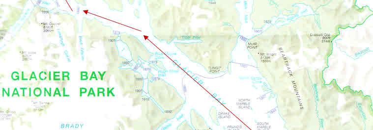 The Margerie Glacier is the cleanest and fastest moving of the two glaciers, but the Pacific Glacier - the black bar on the right in the picture to the left - is by far the largest.