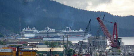 Coming into Ketchikan there were already four cruise ships ahead of us and we had to tender into port - passing a seaplane harbor on the way.