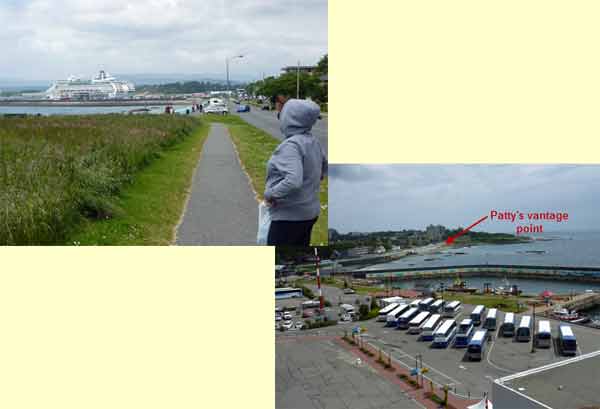 When we got to the shorefront we took a picture of Patty looking toward the Sun Princess, then returned and took a picture of where Patty had been standing.