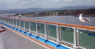 Seagulls seemed to like the ship railings and didn't leave until we were well out in the ocean.
