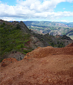 After passing through the city of Waimea, we climbed steadily up the mountains into Waimea Canyon State Park. The views here certainly reminded us of the Grand Canyon, with the dominant red clay coloring. This southern side of the island was certainly much drier.