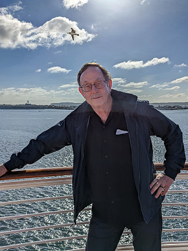 Patty saying a second goodbye to San Diego and a sailboat escorting us out the channel entrance at Point Loma.