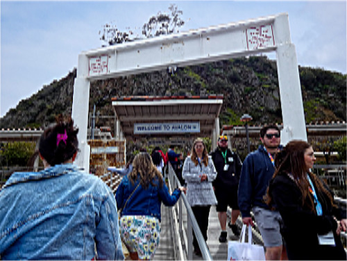 Upon arrival at the cruise tender and Southern California ferry dock, Patty got off and was greeted with this 'Welcome to Avalon' entryway.