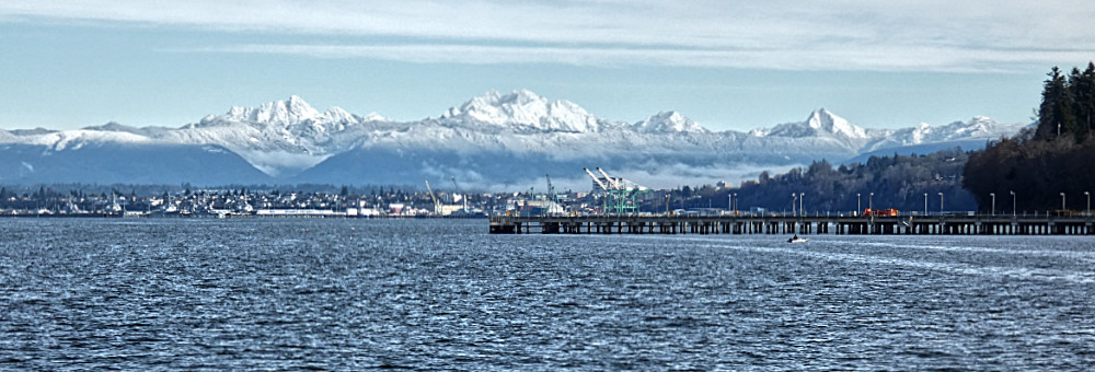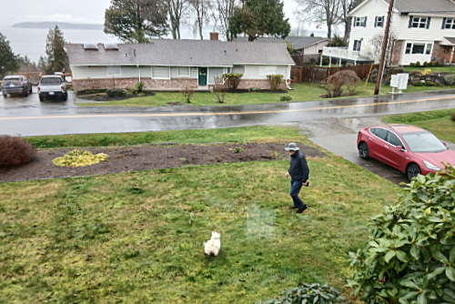 Wet view from their house. That is Whidbey Island you see out over the water.