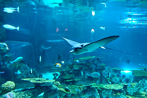 Going through the aquarimum, we saw lots of fish, rare sharks, and rays of all types.
