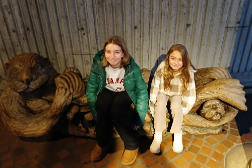 Ashley and Brooke found a place to sit, on the mythical sea creatures of the Northwest.