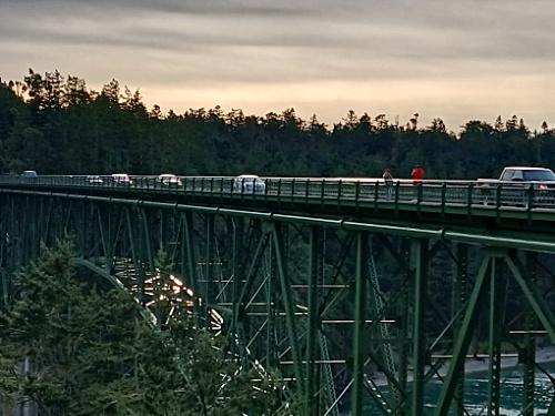 It is 58 miles from Clinton to Anacortes - at the northern end of the island - and we took the day to drive it. 48 miles into the drive we crossed over Deception Pass. This is a very narrow and deep seperation between Whidbey Island and the mainland. The ocean current is very swift and tides are treaterous in this area. Above is a picture of the bridge, with a people walkway on either side. We walked out to the center, looked down, and got a bit of vertigo - deciding to quickly return to the northern side of the bridge.