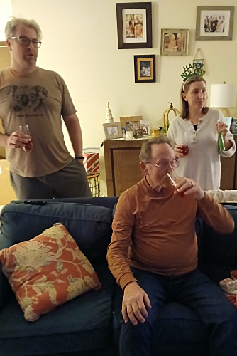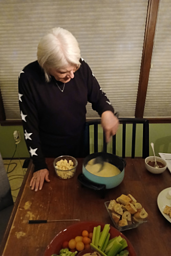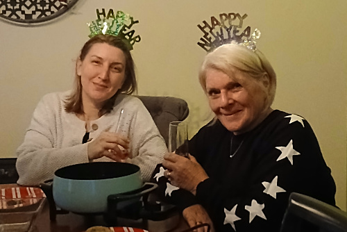 It's already New Year's Eve and Patty is busy mixing dips, while the other adults track the latest games on the TV.